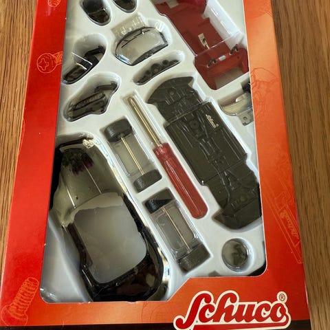 Fin Schuco bil Porche 356B softtopp med campingvogn