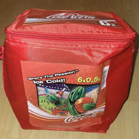 Coca-Cola veske i plast, passer fint til å bruke f.eks på stranden. Måler ca. 50x32x16 cm.