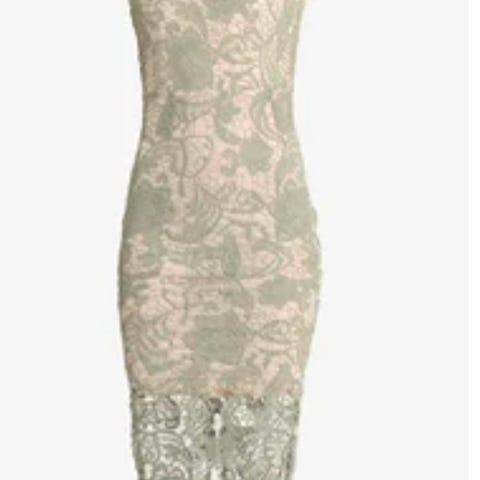Kjempefin figursydd, langermet kjole i blonde. V-hals foran, søm i midjen og åpent parti bak med knapp i nakken. Fôret foran og fôret skjørt. Ubrukt, med lappen på. Ny-pris: 399 kr.