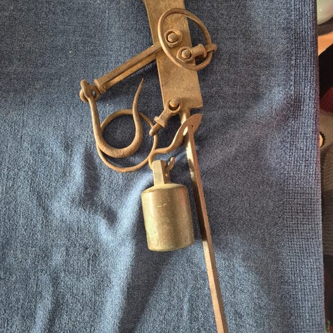 Gammel gedigen Bismervekt i jern og med messing skål og lodd.