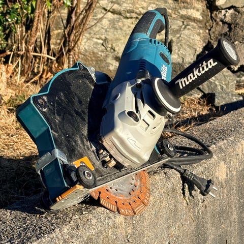 Det medfølger et stk diamantblad, denne fungerer utmerket til å kutte skifer, betong og lignende.