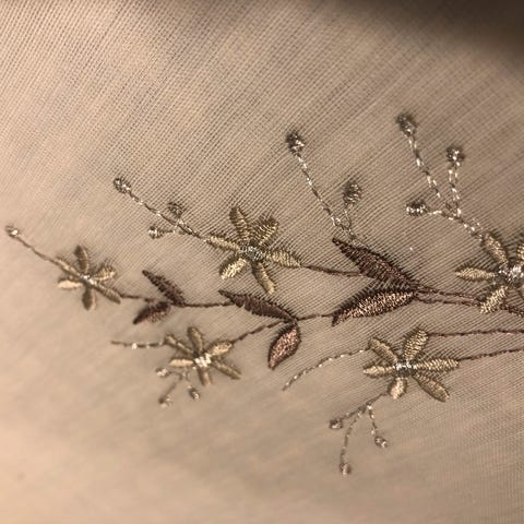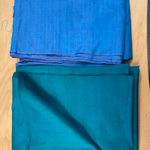 Nydelig stoff av silke fra min oldemor. Det er en blank tykk helsilke fra Hong Kong. Når stoffet skal sys, ville min bestemor anbefale at man har kontakt med en som er kjent med søm (da dette er et veldig fint stoff).