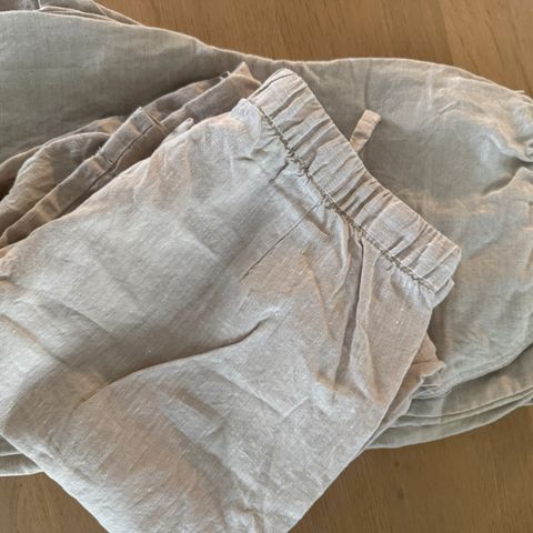 Behagelige linbukser fra Oysho, nesten ikke brukt. Størrelse M. Lommer i siden, en baklomme, legg i front og strikk bak. Samme passform som bilde 1/2, men fargen er varmere som på bilde 3.