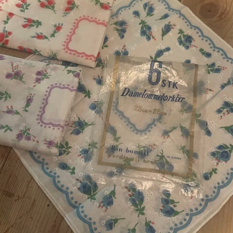 Ubrukte, Eldre / retro dame lommetørkler ~ Ren bomull