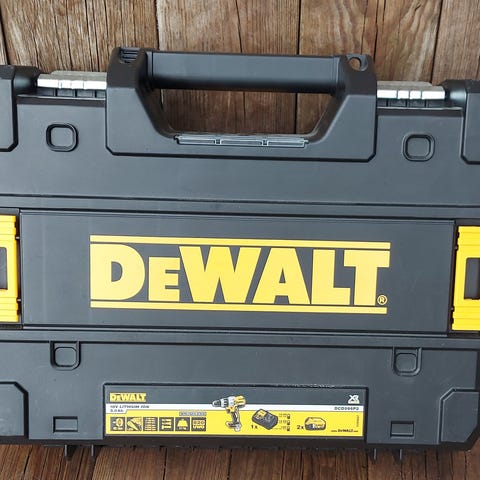 Er fra skrudrill sett Dewalt DCD778S2T, med skrudrill, 2 stk. batteri og lader.