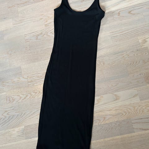 Svart bodycon halterneck minikjole, ubrukt. Str. S. Stretchy. Den er ca. 86 cm lang (total lengde med halterneck)/60 cm lang (fra øverst på rygg og ned) og ca. 36 cm bred (armhule til armhule). 99,- + frakt.