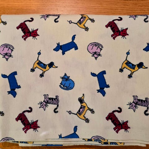 Bomull på beige bunn med koselige katter,B=1,10, L=1,00 m.