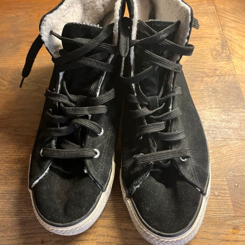 Ubrukt Converse med pels i str 37,5 i svart farge selges for 300kr fremstår som ny