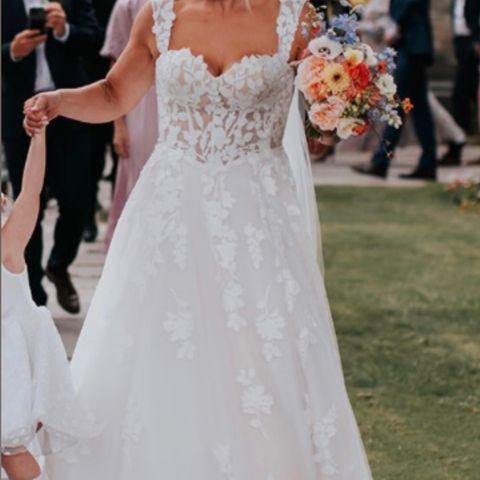 Fra Judys Atelier Brudesalong i Kristiansand betalte 17 500,- for ny, dette er ikke inkludert de 1 000,- for rens i etterkant.