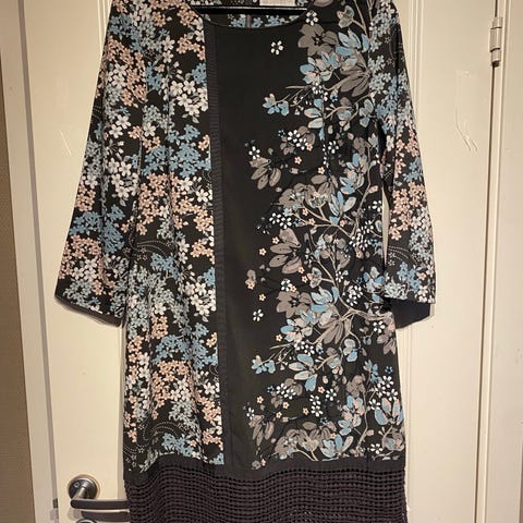 Nydelig sommerkjole med delikat print fra Britiske merke John Rocha. Feminin og flatterende fasong med god elastisitet i stoffet. Kjøpt i London på Debenhams. Str UK 14 som tilsvarer norsk L.