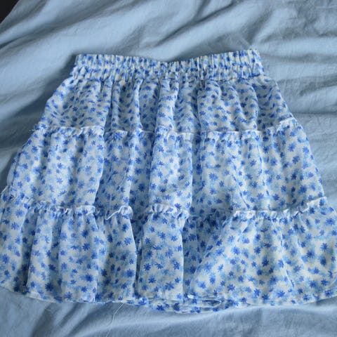 6. kr 50 - Skjørt i bomull blå/hjerter