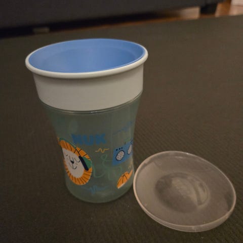 Lokket i koppen kan skrues for å stille hvor mye væske som renner ut.