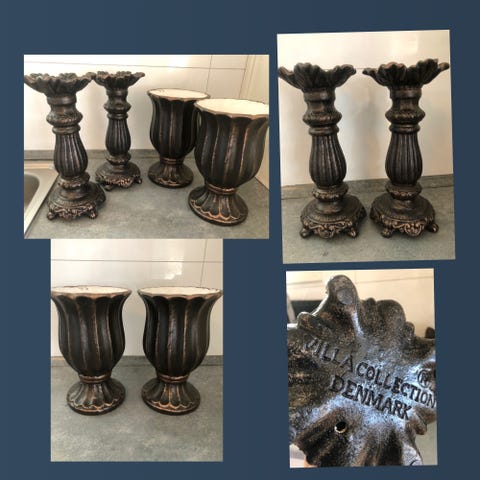 2 stk romslige blomsterpotter, potter i malt metall som er behandlet.
