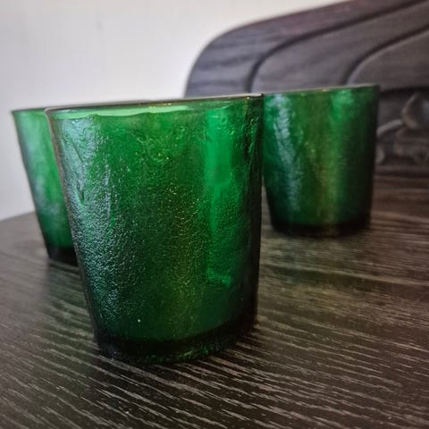 Selger veldig fin og nesten ubrukte glass Asjetter /tallerkener og dessert skål /boller i veldig god kvalitet pga plass mangel.