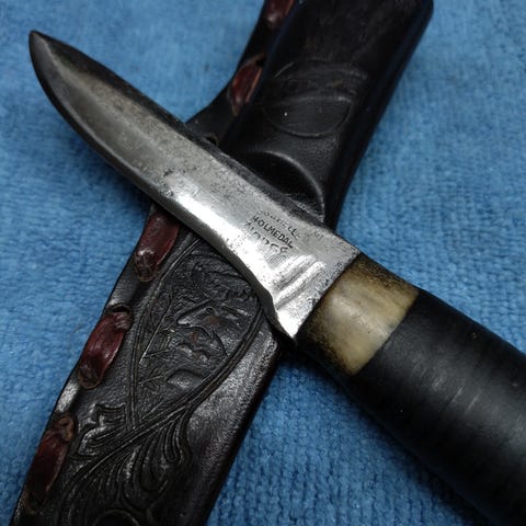 Ubrukt Helle vikingkniv "Nidaros". Design av Tor Indergaard.