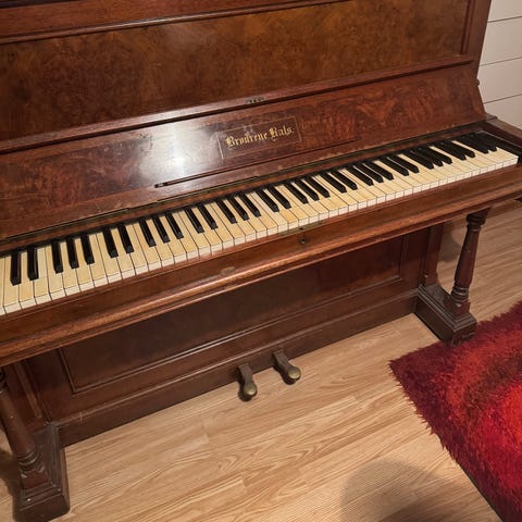 Piano med stol vært i kjelleren veldig lineg nå gir jeg den bort fordi vi ikke trenger den