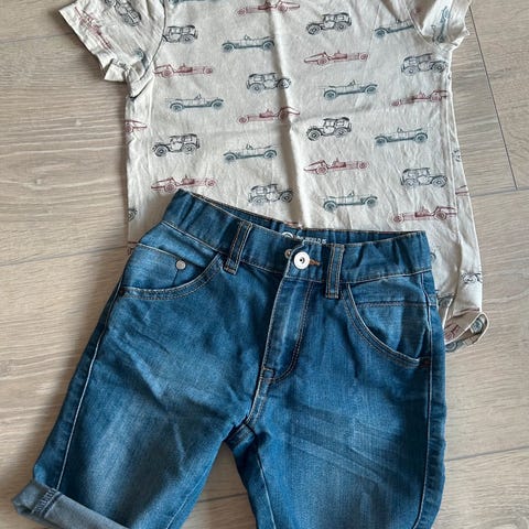Klassisk lys blått og hvitt sett med T-skjorte og bukse. Ingen anmerkninger som jeg kan se. Perfekt til vår, sommer eller syden.