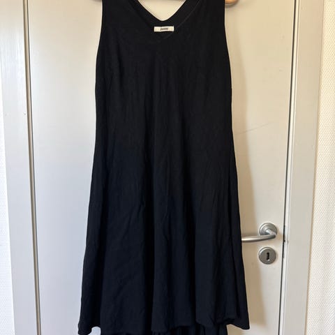 DKNY kjole, bomullsliv og chiffon/tyll-aktig skjørt med for i silke. Farge: Svart. Str Small. Elastisk og passer fra str 34-38. Nydelig kjole!! Tettsittende til under bysten, så vid i skjørtet. Rekker til kneet (om ca 170 høy).