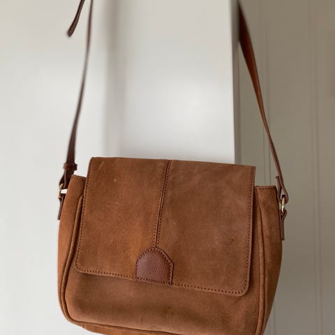 Vet ikke type skinn. Kan se om det står noe inne i vesken senere, men mykt herlig cognac farget. Under materiale på Finn, fikk jeg enten opp kunstlær eller lær. Litt forvirrende da jeg ville ha hatt mulighet for å merke som skinn, da jeg opplever lær til å være mye røffere og tykkere enn det som er i vesken. Kom gjerne innom for en titt. Opprinnelig pris som ny for flere år siden var kr 1800,-. Kjøpt rundt 2014, men blir ikke brukt, da jeg enten går med ryggsekk eller en liten clutch som får plass i sekken 😂