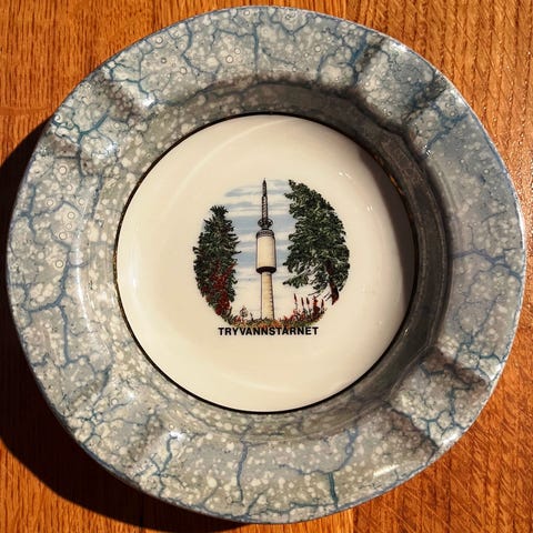 Flott feilfritt askebeger fra Arol Handmade Norway. 18 cm i diameter. Samleobjek, reklame, tobakk, sigaretter. Sender mot porto.