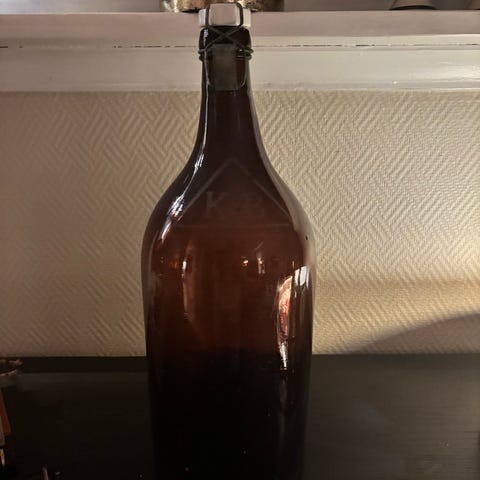 Ølflaske 49 cm høy fra Brålanda bryggeri ed kurv.