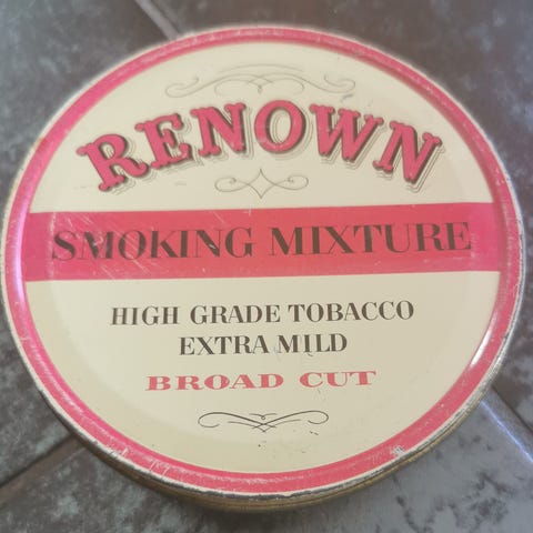 Four Crown fra Conrad Langaard boks. Reklame, reklameboks, landhandel, tobakkboks, tobakk, samleobjekt. Sender mot porto.