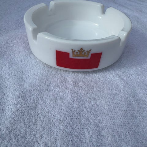 1 stk stort og fint PRINCE askebeger. Den røde PRINCE logoen finnes tre ganger nederst rundt askebegeret, og det er også merket PRINCE under askebegeret utenpå.