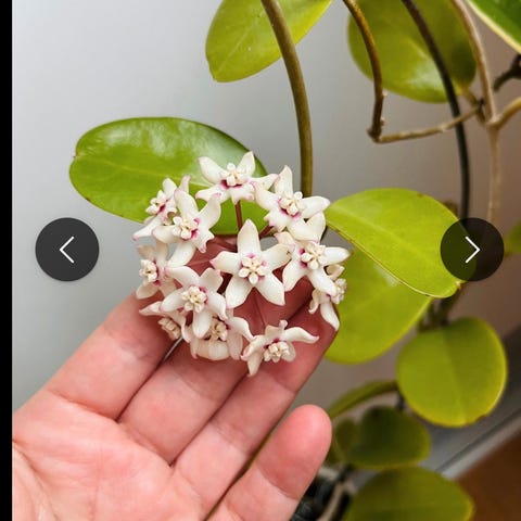 Hoya Carnosa- Porselenplante, fin stikling. Den blomstrer hos meg cirka 1-2 ganger årlig. Har fine, frodige blonstrene som lukter vakkert og søt. Lettstelt plante, vokser fort.