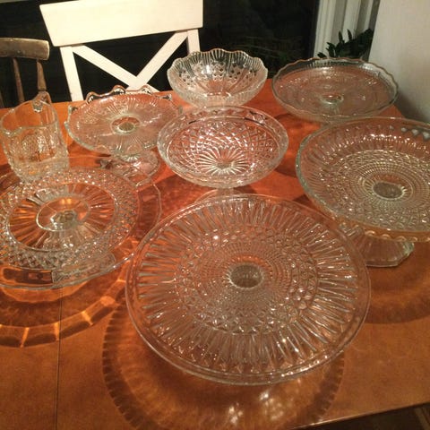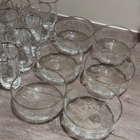 Lot, servering,glass,krystall,bolle,mugge,retro.