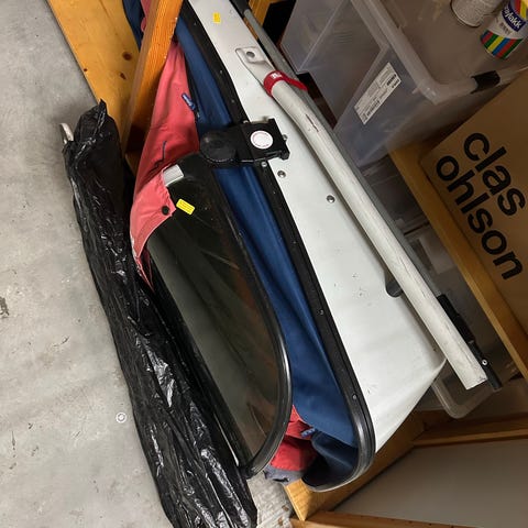 Er et par rifter i stoffet frempå, men kan fint syes.
