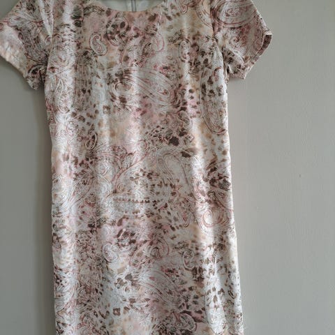 Ubrukt Moods kjole str 40 selges. Den har en splitt i ryggen. Det er underskjørt og 2 lag med stoff. Ny pris 2.000,- Selges for 800,-
