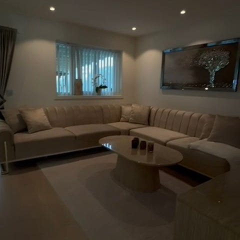 Hjørnesofa mål 288 x 343 x 150 høyde rygg 78 dybde 86 farge cool sand beige