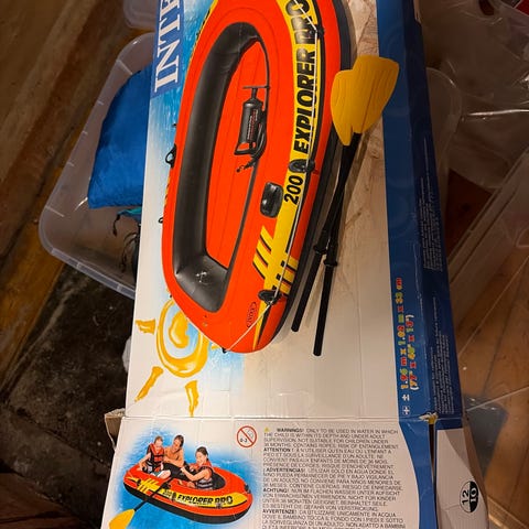 Oppblåsbar flamingo til bruk i vannet. Flamingoen har gode håndtak på siden av halsen, og måler 142 x 137 x 97 cm.
