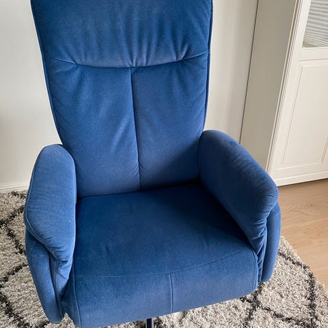 ASTRA hvilestol fra Bohus. farge: midnight blue. Integrert fothviler. Rygg og fothviler kan reguleres uavhengig av hverandre.