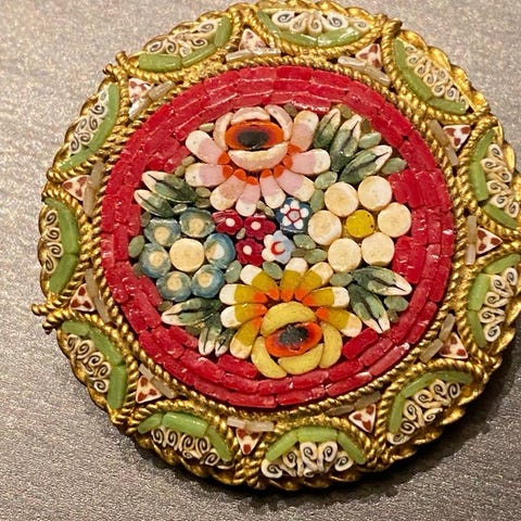 Vintage mikromosaikk brosje – italiensk håndverk 🌼