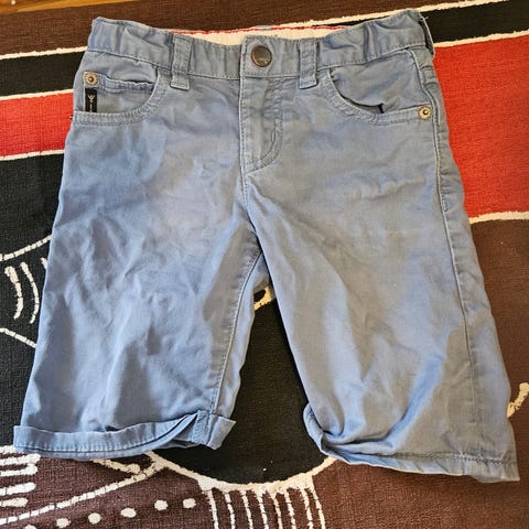 Fra KappAhl. Blå. 98% bomull, 2% elastan. Med beltehemper og lommer. Pent brukt.