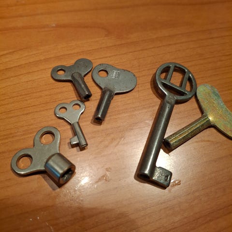 Søkeord: gamle nøkler til: Kiste. Kommode. Skap.Skrin. Smykkeskrin. Skapdør.