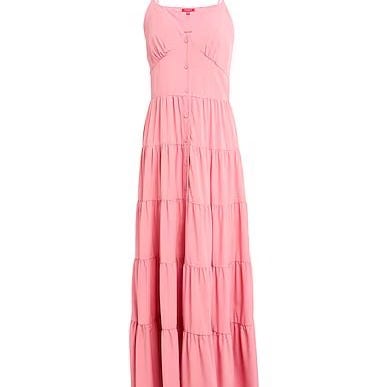 Kjempe fin sommerkjole i en nydelig lett fersken rosa farge. Knytting i livet.