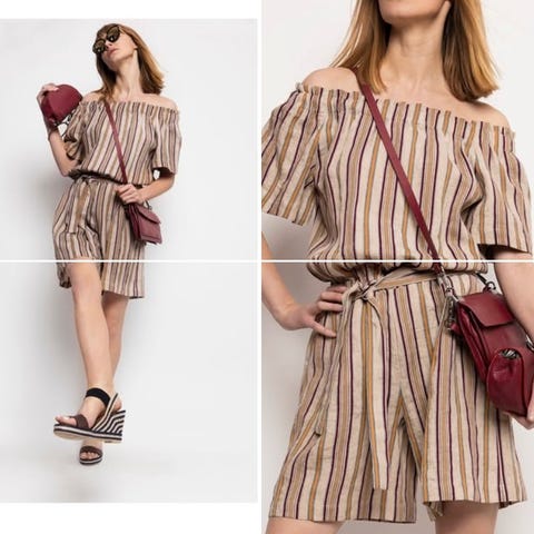 Størrelse norsk 40, bredde fra armhule til armhule 51 cm x 2, midje 40 cm (+ strekker seg noen cm), hofte 53 cm, lengde 100 cm.