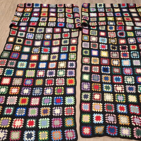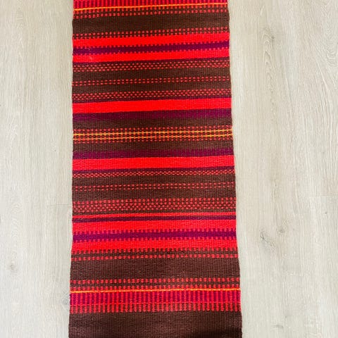 Hjemmevevet tynt teppe i ull, offwhite med striper bredde 120 lengde 190