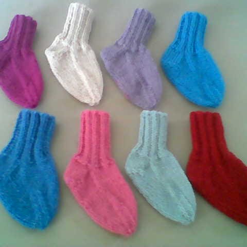 Ull babysokker svart, røde og de blå er tova. Svarte 0-3mnd, røde 0-3 mnd og røde 3-6 mnd. Blå 3-6 mnd. 80 kr pr par.