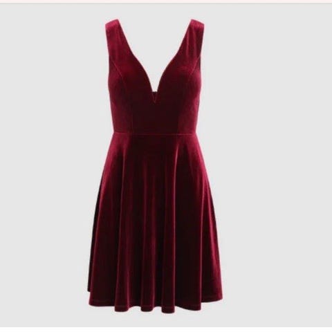 Urban Pioneers festkjole for dame i størrelse M. Kjolen er svart med knytebelte i livet og V-utringning. Modellen har 3/4-lange ermer og et rett, lett utsvingt skjørt som rekker omtrent til over kneet, avhengig av høyde. Passer til bruk ved festlige anledninger og andre situasjoner der en enkel, mørk kjole er ønsket.