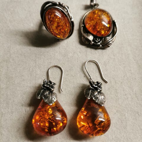Ørepynt med rav. Pris og beskrivelse ved hvert billede. Butterscotch er solgt