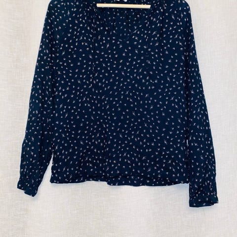 Blomstret bluse/topp blå/hvit / str 40