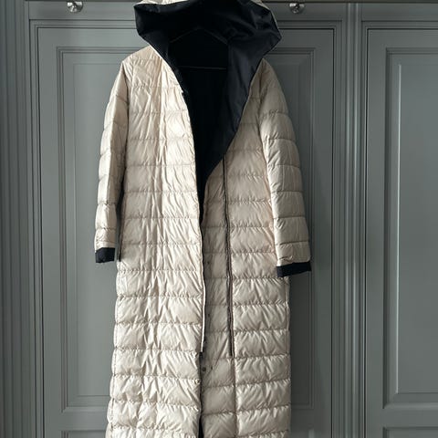 Dunnkåpe av Massimo Dutti str. S til salgs mot henting. Farge: stålgrå. To sidelommer med glidelås, se bilder. Høy hals, men uten hette. Glidelås foran og belte. Lengde: 97 cm.
