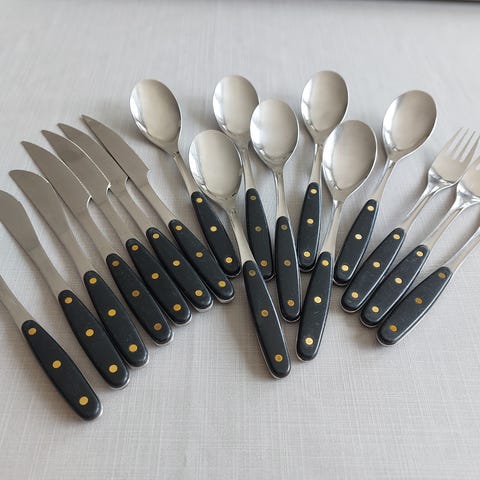 Disse ble kjøpt på 70-tallet og vi har brukt tilsvarende siden 70-tallet. Teskjeen du ser på på midten av det siste bilde er den vi har brukt. Hbo kr 200.-. Larvik.