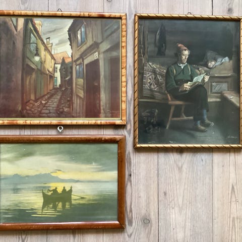 Selger alle 4, ferdig innramma for 80,- (20,-/stk)