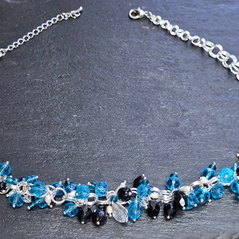 Selger et Stilig og moderne halskjede med blåfargede ferskvannsperler.
