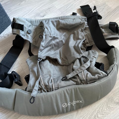 Selger bæresele da vi ikke trenger den. Nesten ikke brukt da baby ikke likte å bli bært i noen seler 🥲