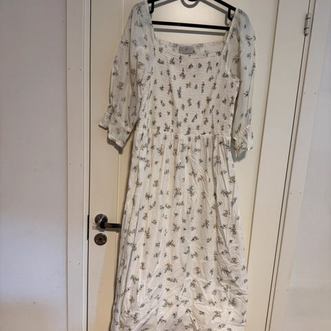 Søt off-shoulder blomstret kjole. LYS BEIGE. OFF-WHITE. H&M.
